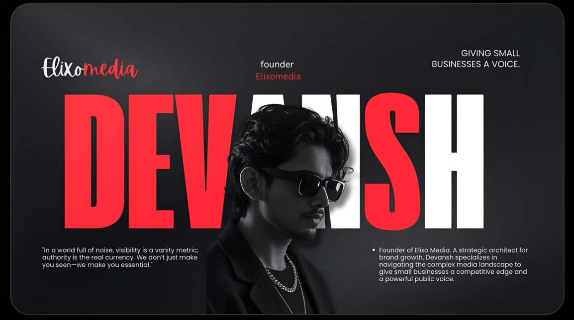 At an age when many are still exploring career options, Devansh has already stepped into the role of a digital marketing strategist and entrepreneur. Through ElixoMedia, he is helping brands, creators, and businesses build structured digital growth systems that move beyond basic social media presence and focus on measurable results.