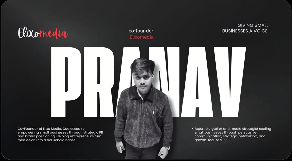 Pranav Keshari , Co-Founder and Media/PR Strategist, focuses on storytelling, brand communication, and media positioning. His work helps shape how brands communicate their stories and build credibility in the market.